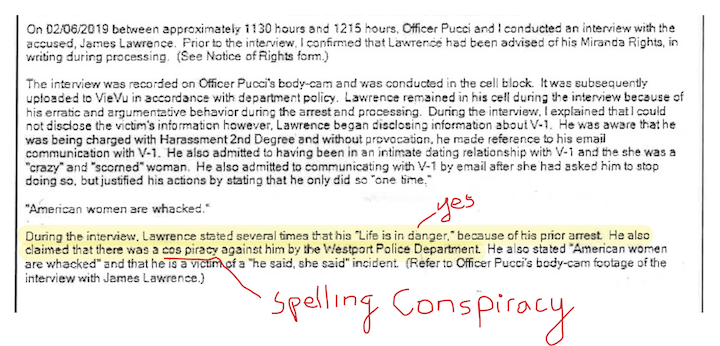 He also claimed that there was a cos piracy against him by the Westport Police Department."